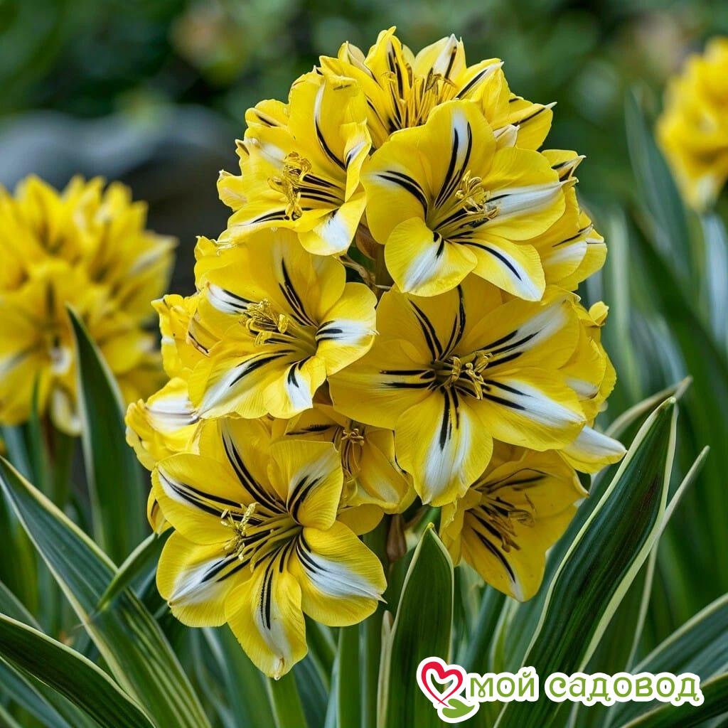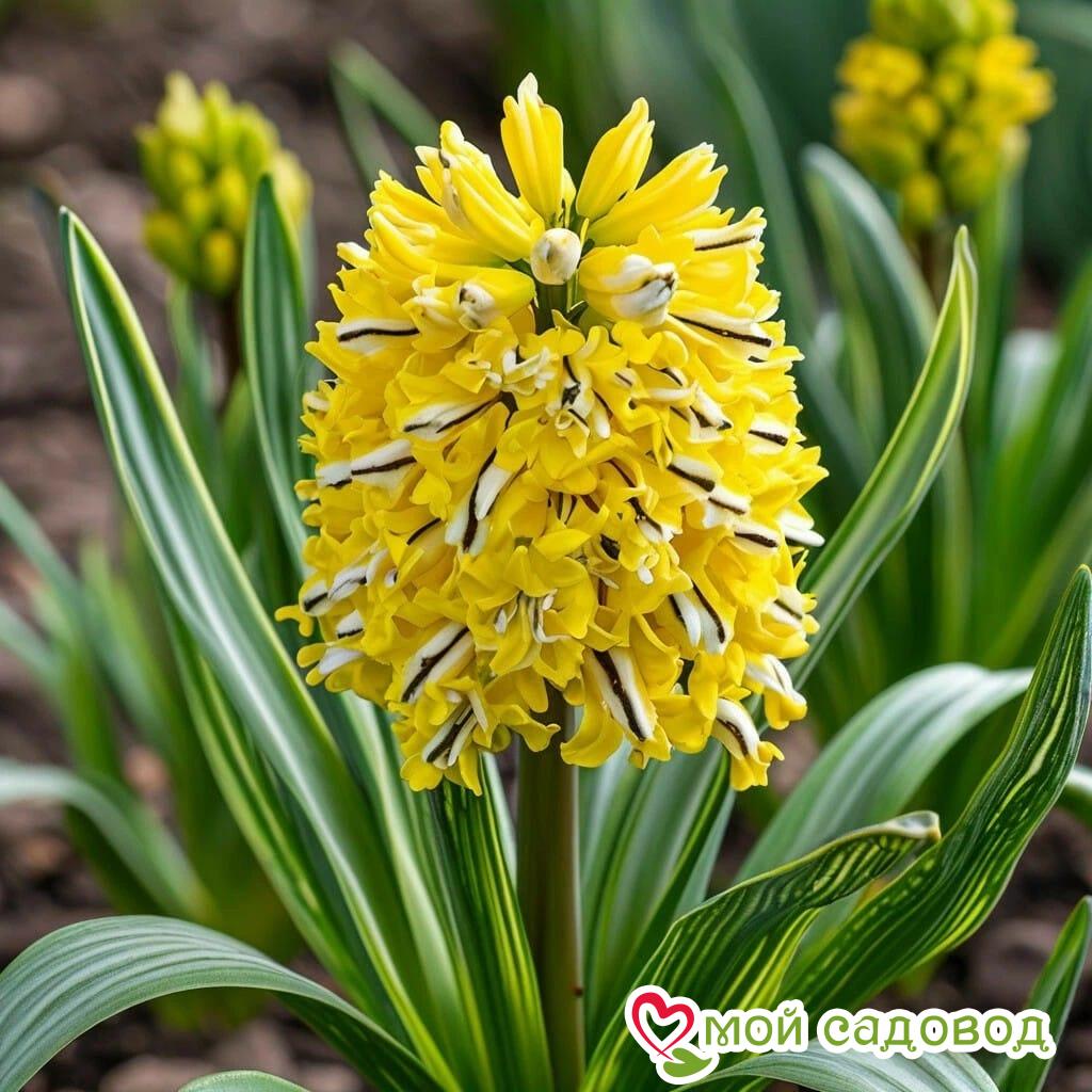 Добро пожаловать в интернет-магазин “Мой Садовод”! Мы представляем вам сорт, который захватывает дух своей неповторимой красотой, — гиацинт “Сансет Голд” (Sunset Gold). Этот гиацинт, словно завораживающий закат солнца, сочетает в себе нежность белого цвета с теплом жёлтой сердцевинки и дерзкими чёрными полосками на лепестках, создавая эффект произведения искусства. “Мой Садовод” — ваш проводник в мир прекрасных растений, где каждый саженец — это вклад в красоту вашего сада!